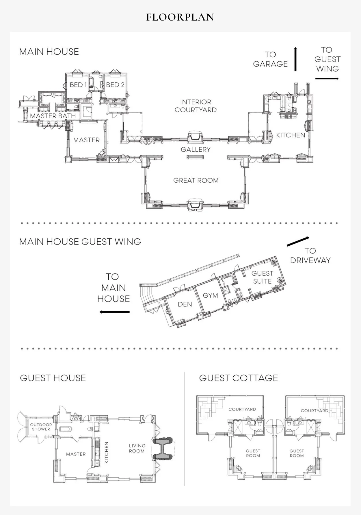 The Estate. 7 Bedrooms 5 Bathrooms 2 Half Bathrooms 3 Kitchens 7 Fireplaces Main House Guest House and Cottages